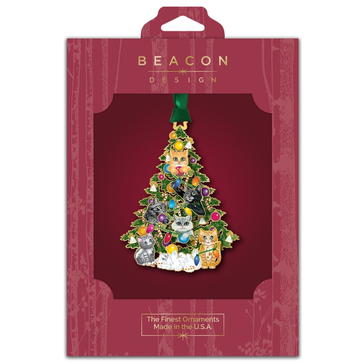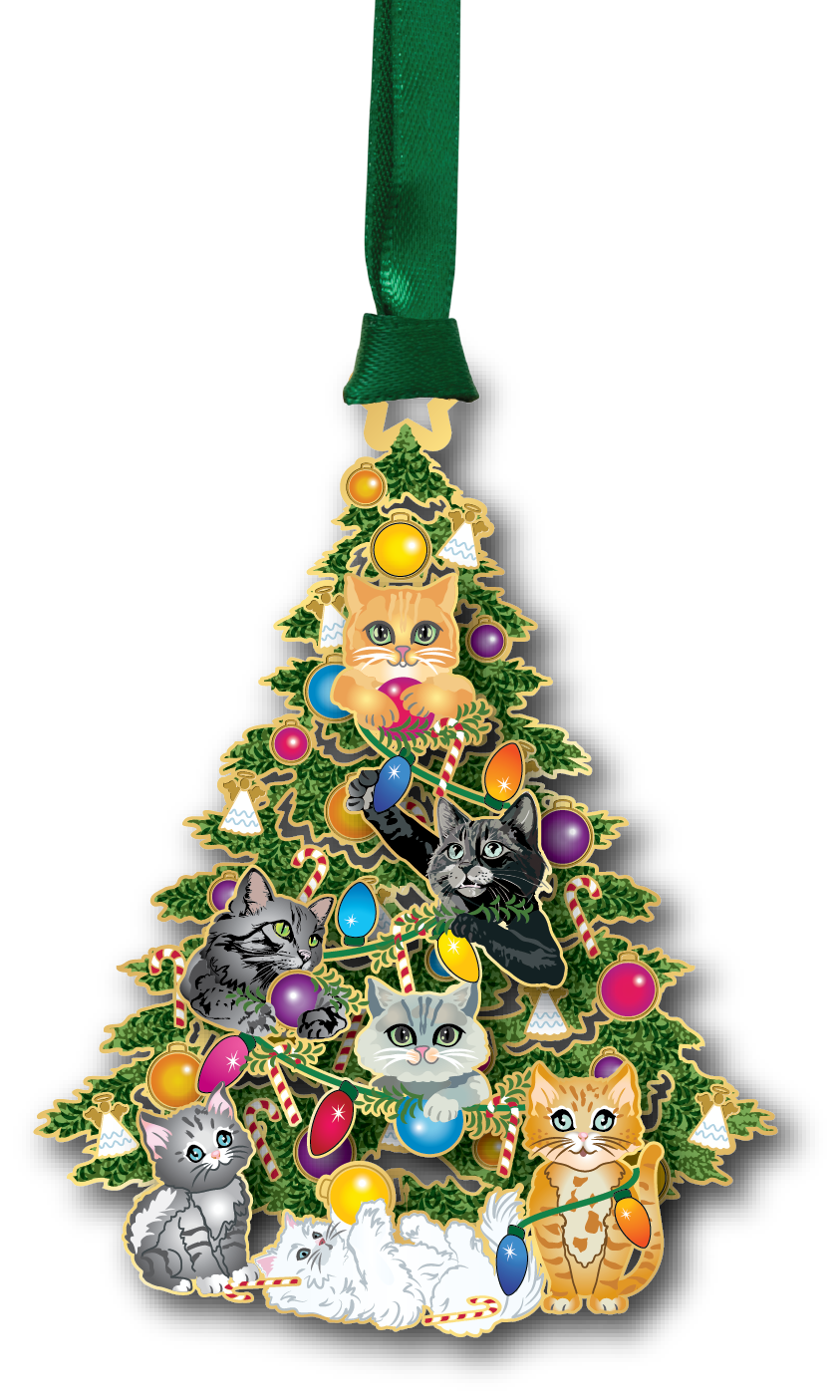This whimsical ‘Cat Christmas Tree’ ornament features a festive scene with playful cats nestled within the branches of a beautifully decorated tree, perfect for cat-loving customers.