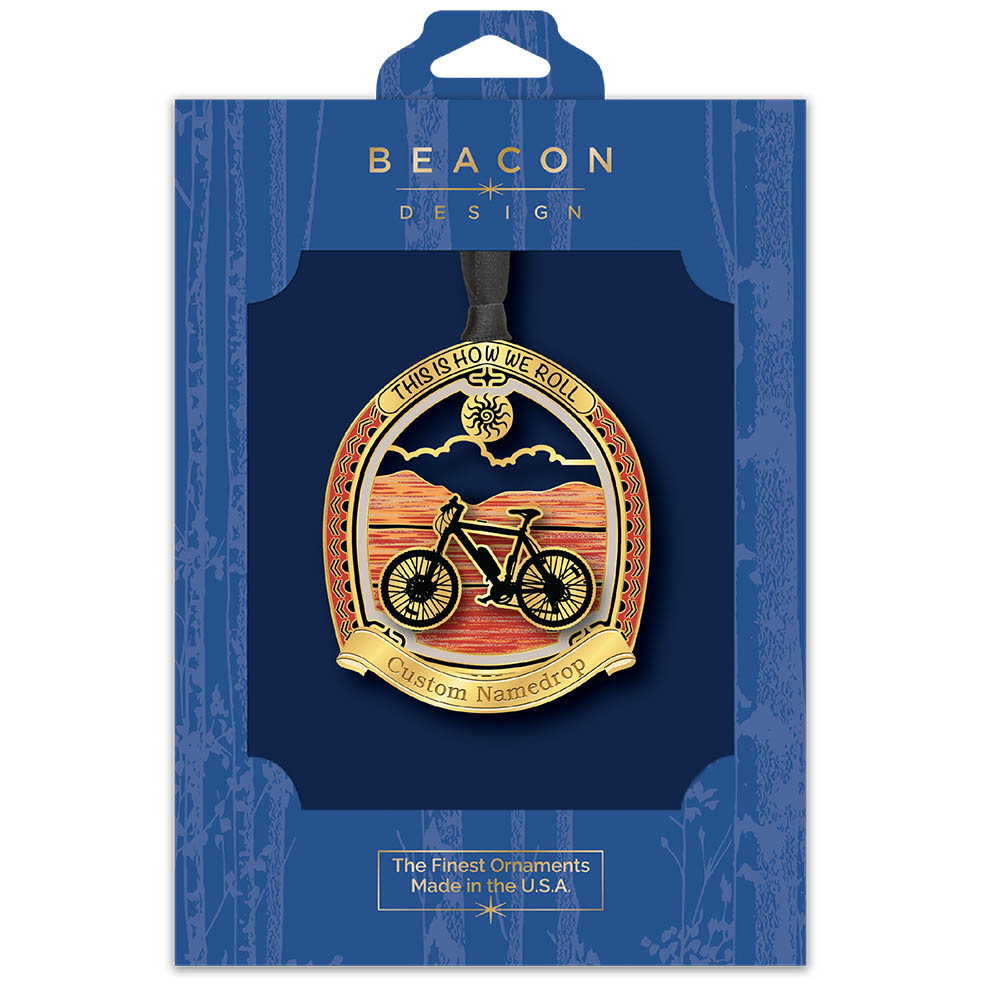 Your customers will love this How We Roll Namedrop ornament, it’s a great gift for bicyclists and is customizable with the text of your choice.