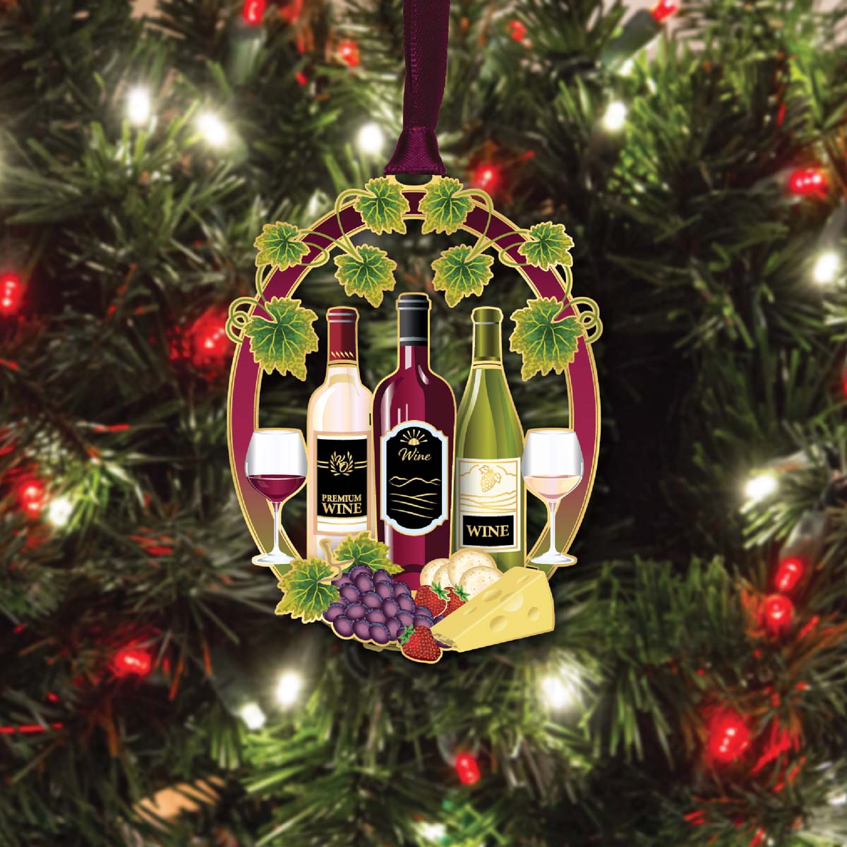 Attract your wine-enthusiast customers with the ‘Winery’ ornament. It displays a perfect winery scene, featuring bottles and glasses of premium wine, complemented by an assortment of fine fruits and cheeses.